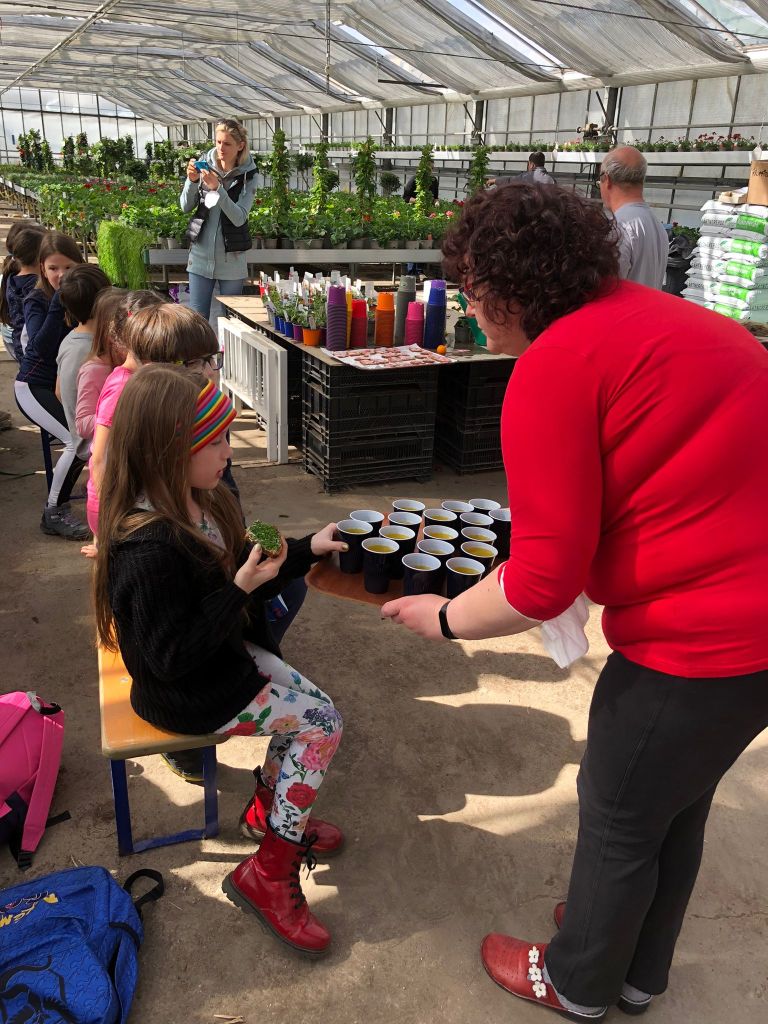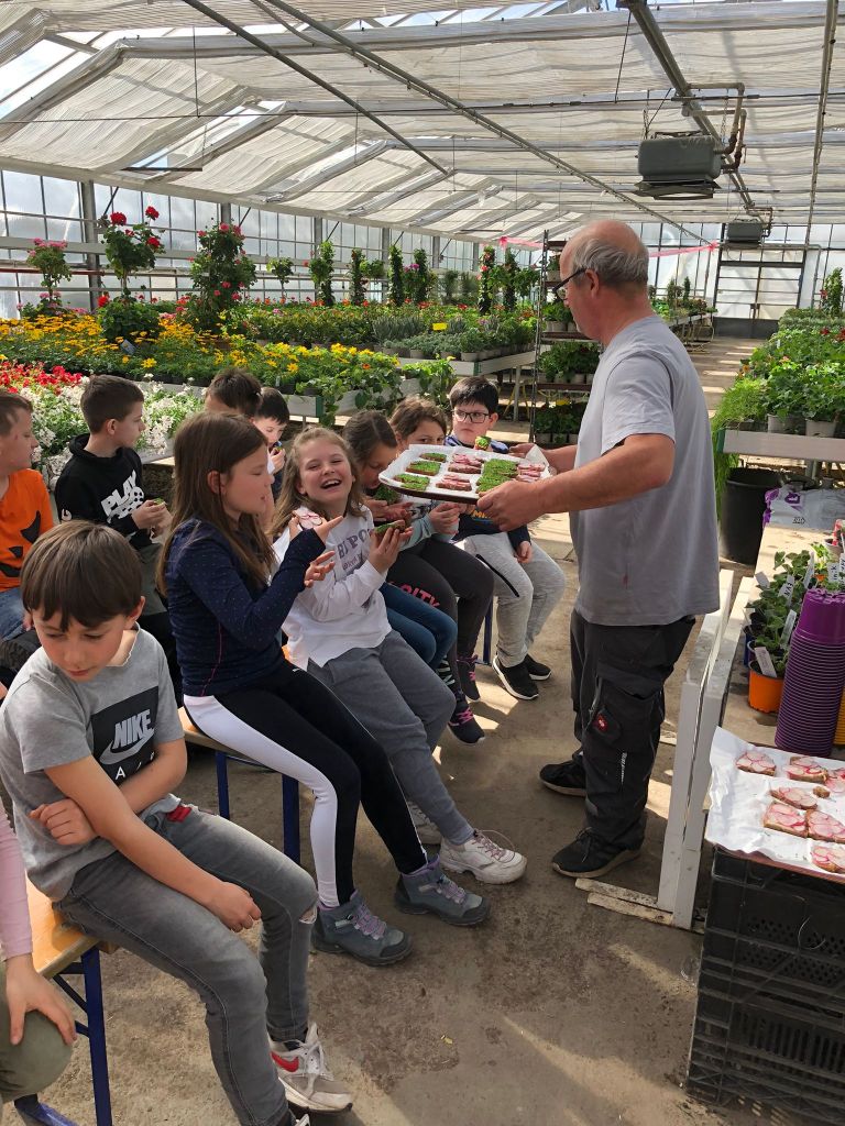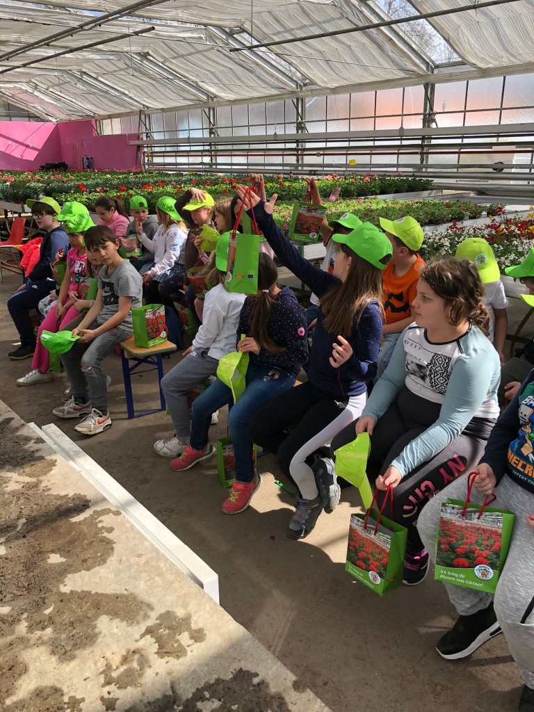 Am 7. April besuchten die 2. und 3. Klasse die Gärtnerei Kropfitsch. Wir wurden sehr herzlich von Herrn Leschanz begrüßt, anschließend führte er uns durch die unterschiedlichen Glashäuser der Gärtnerei Kropfitsch. Danach durften wir die Hummeln beobachten, die für die Bestäubung der Pflanzen zuständig sind. Die Kinder pflanzten dann eine Tomaten- und eine Pelagonienpflanze ein, welche sie mit nach Hause nehmen durften. Zum Schluss wurden wir mit einer leckeren Jause verwöhnt.
