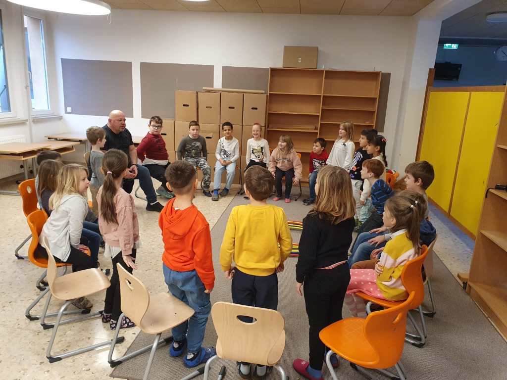 Das Projekt Capless mit Patrick Jaritz ist seit vielen Jahren fester Bestandteil unserer Schule. Hier sehen wir die 1b Klasse wie sie zu sozialen Themen wie Ausgrenzung, Mobbing und Anderssein arbeitet.