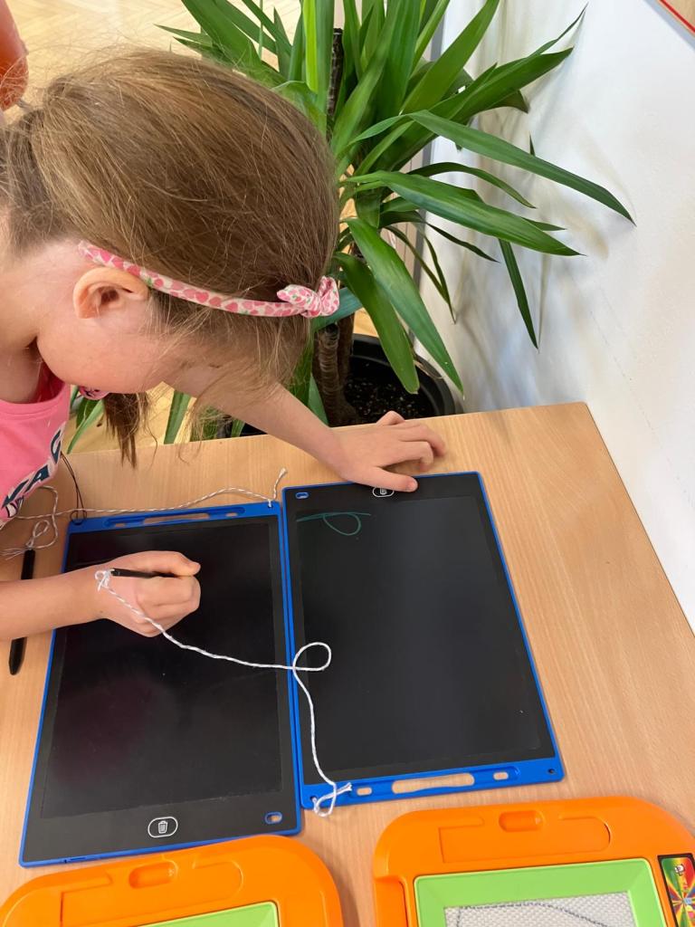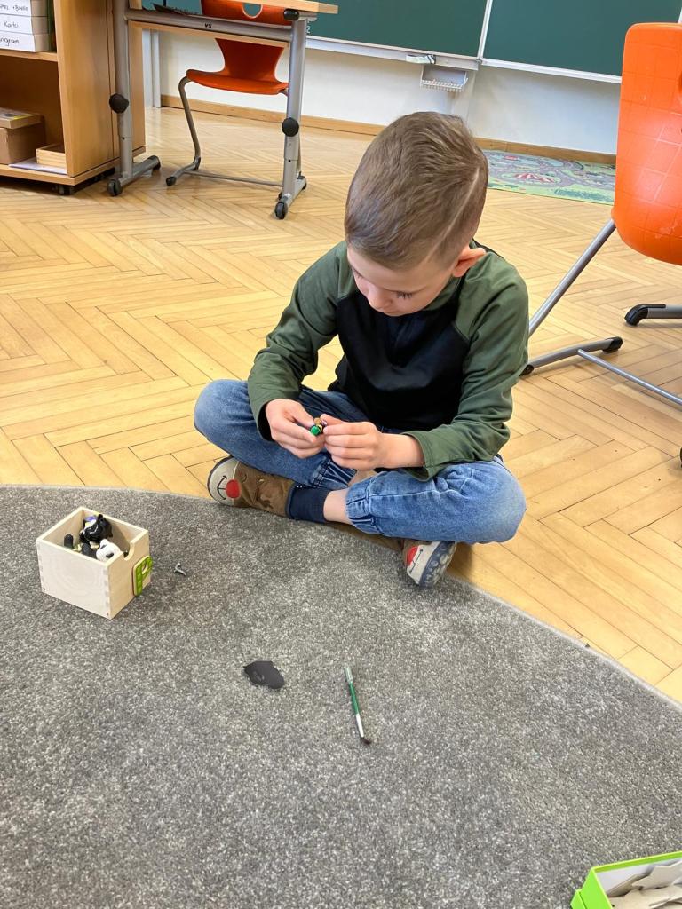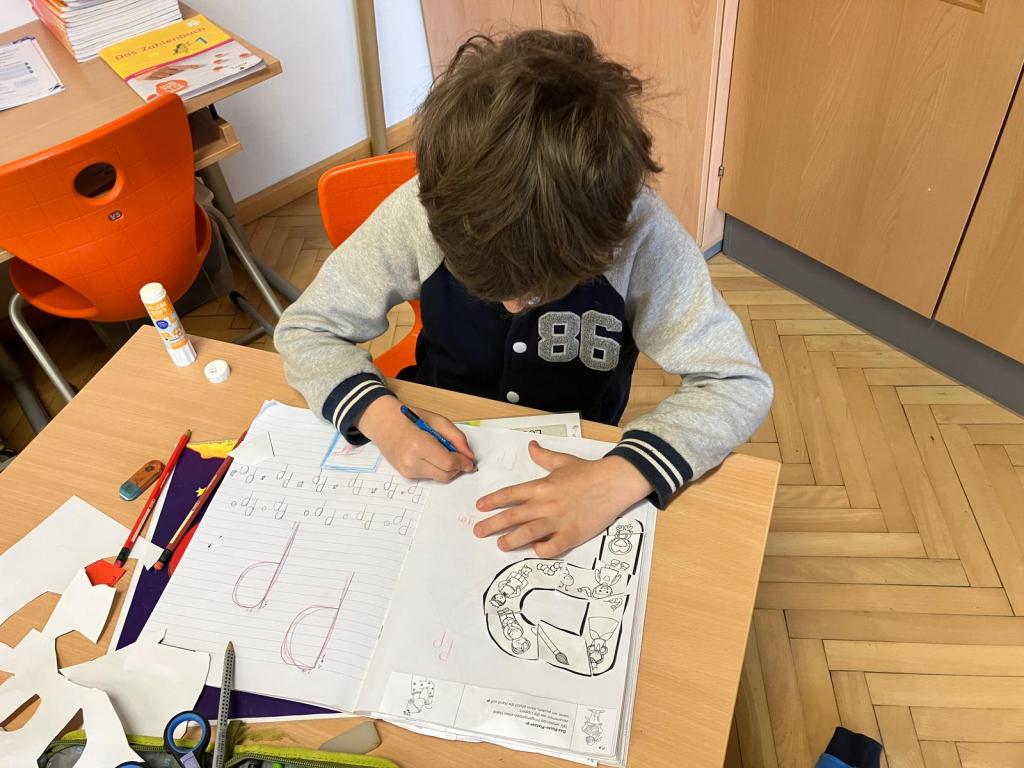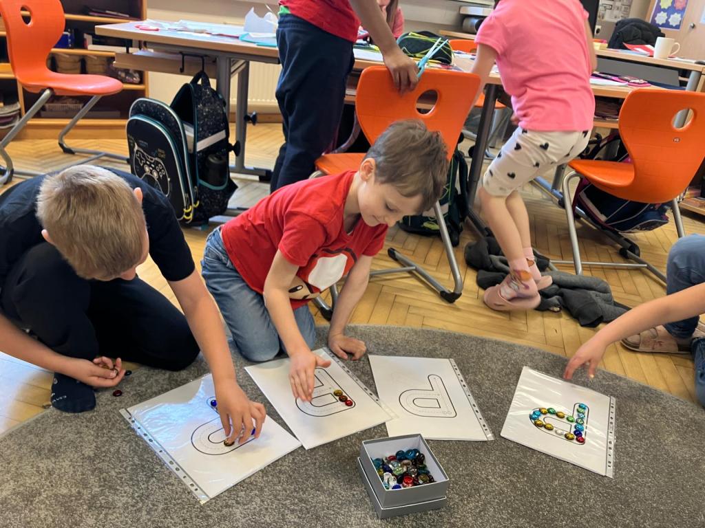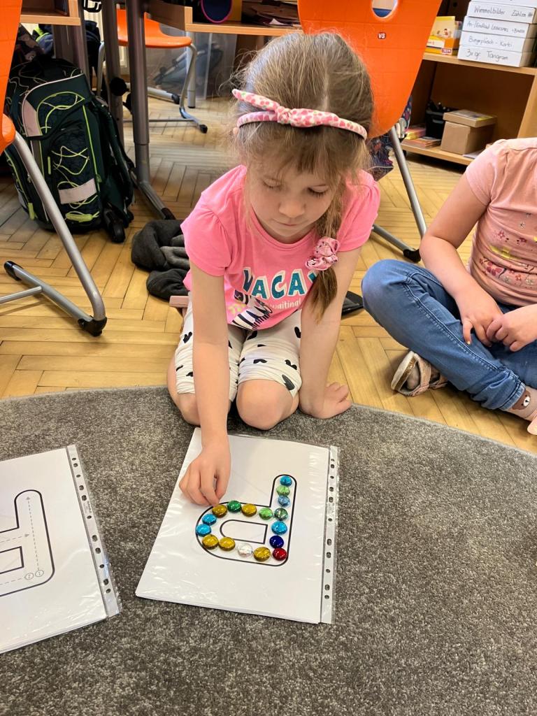 Hier ein kleiner Einblick in die Buchstabenerarbeitung in der 1. Klasse. Die Kinder können den neuen Buchstaben oder „Buchstaben der Woche“ auf vielfältige Art und Weise (be-)greifen.