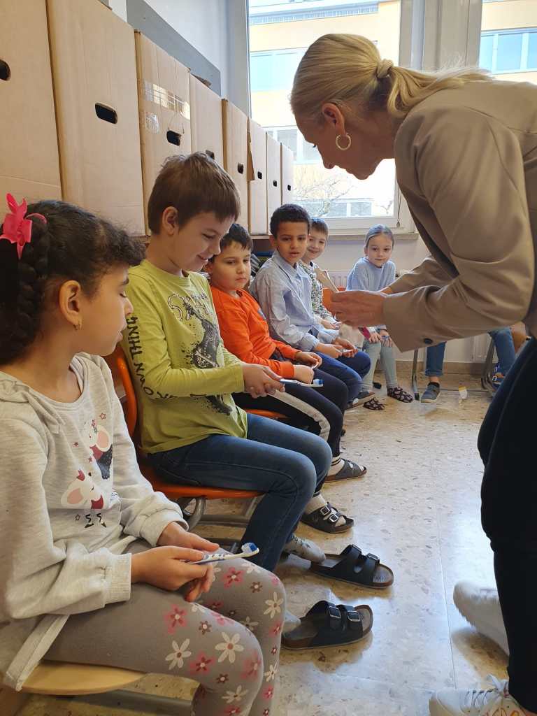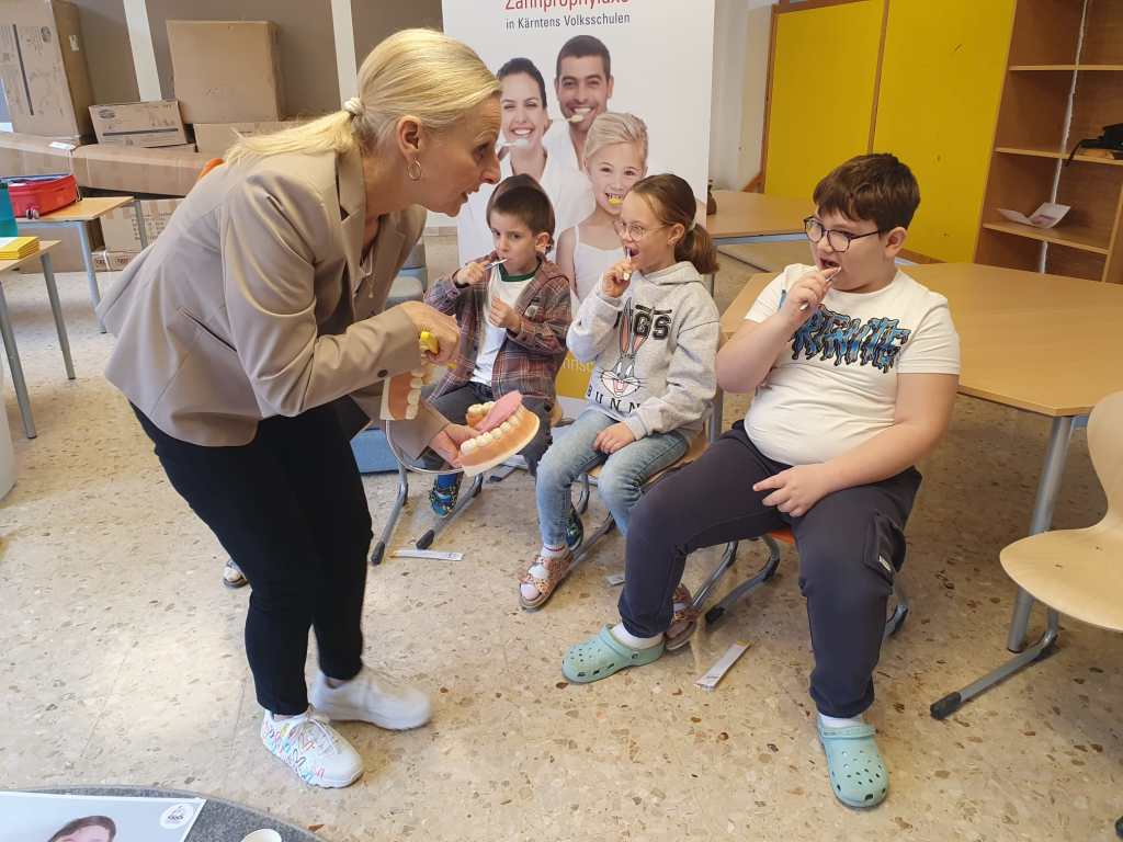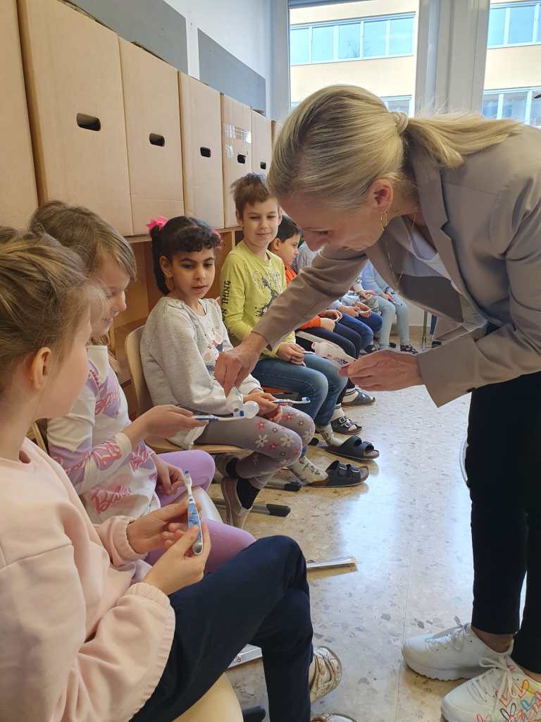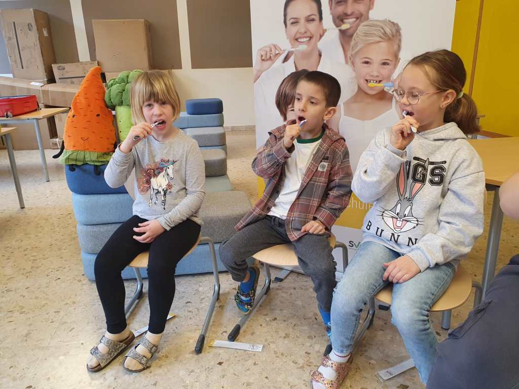 Wie sind unsere Zähne aufgebaut? Was ist gut/schlecht für unsere Zähne? Warum müssen wir überhaupt Zähne putzen? All diese Fragen werden mit den Kindern bei dem Projekt Zahngesundheit in der Schule anschaulich gemacht und besprochen.