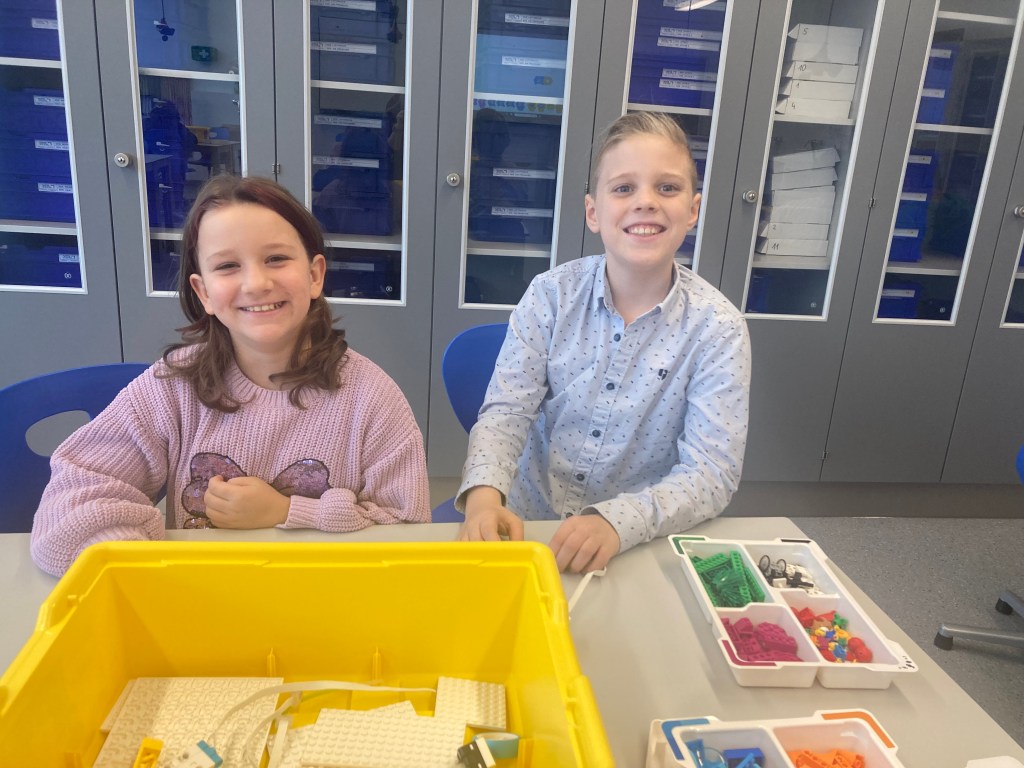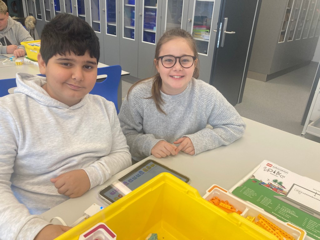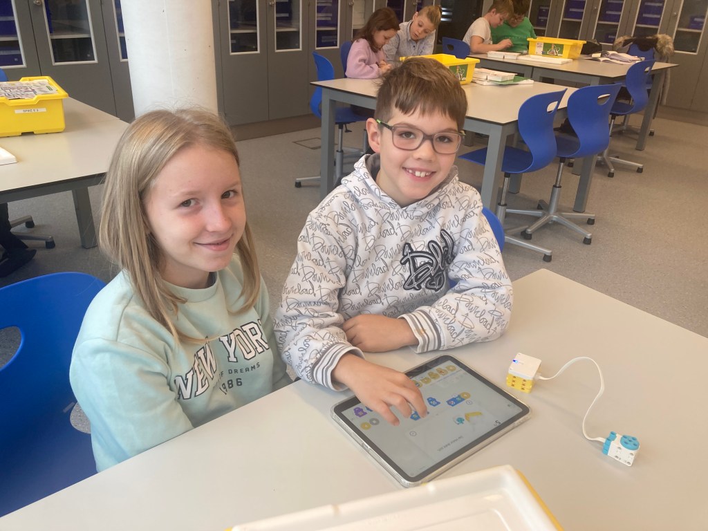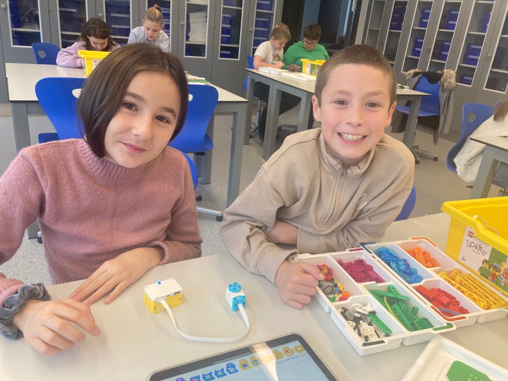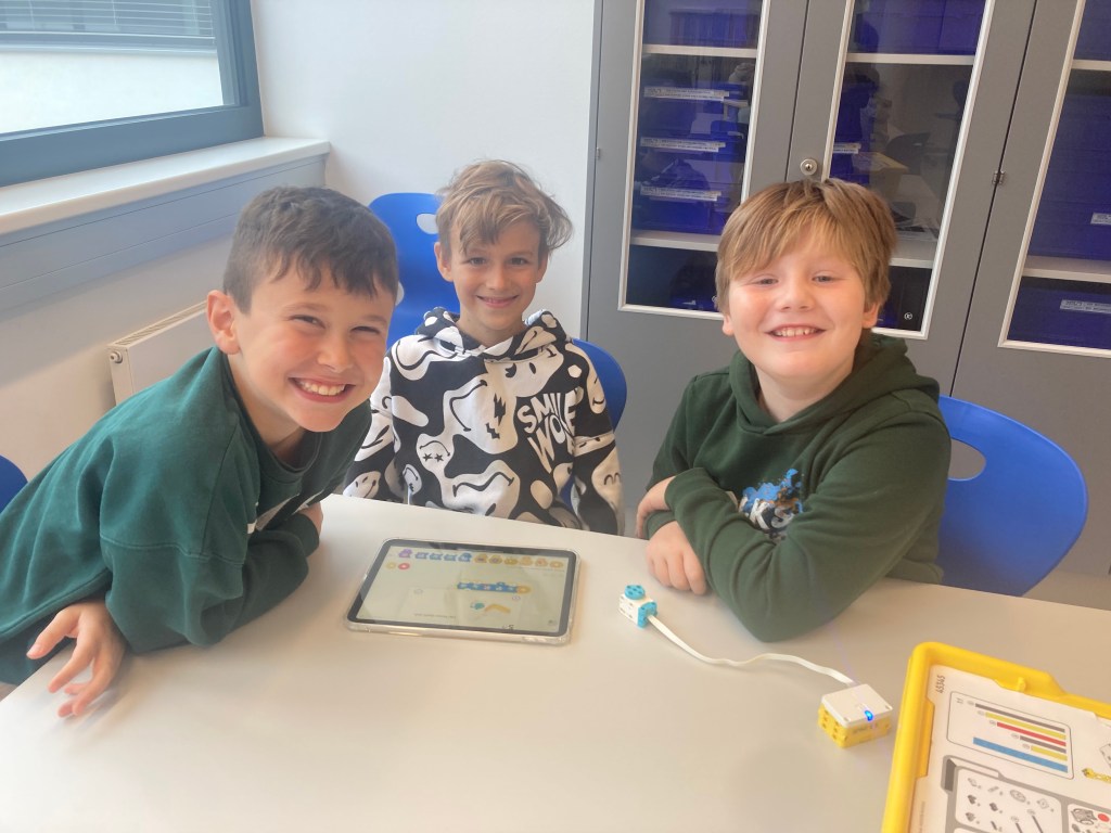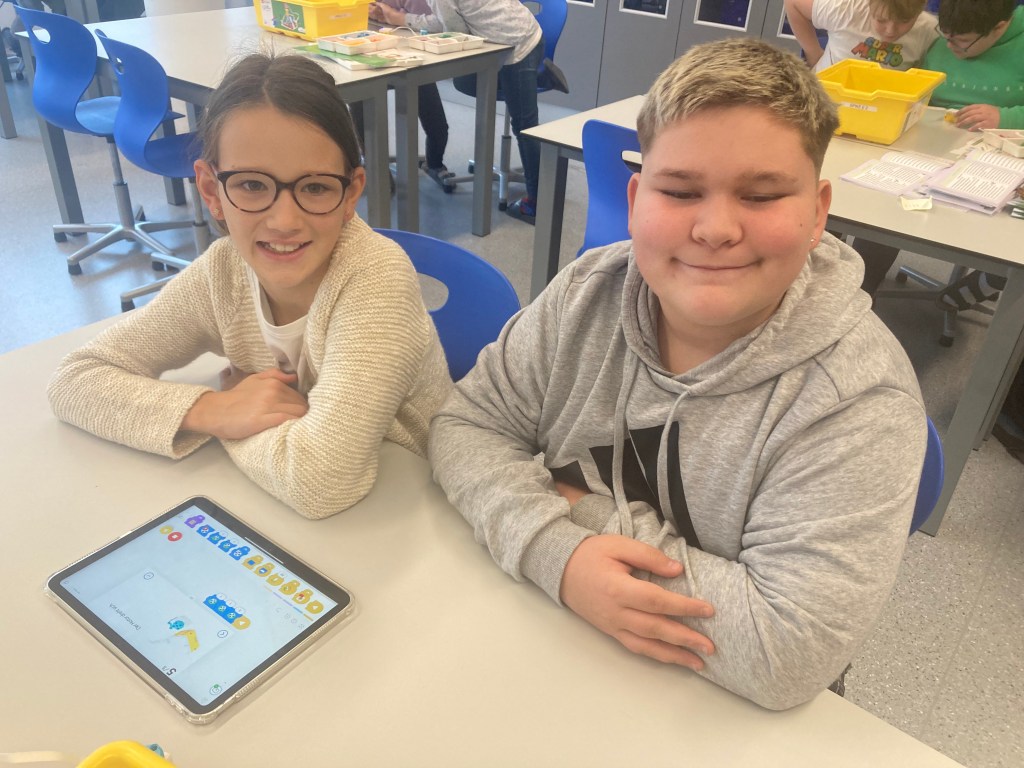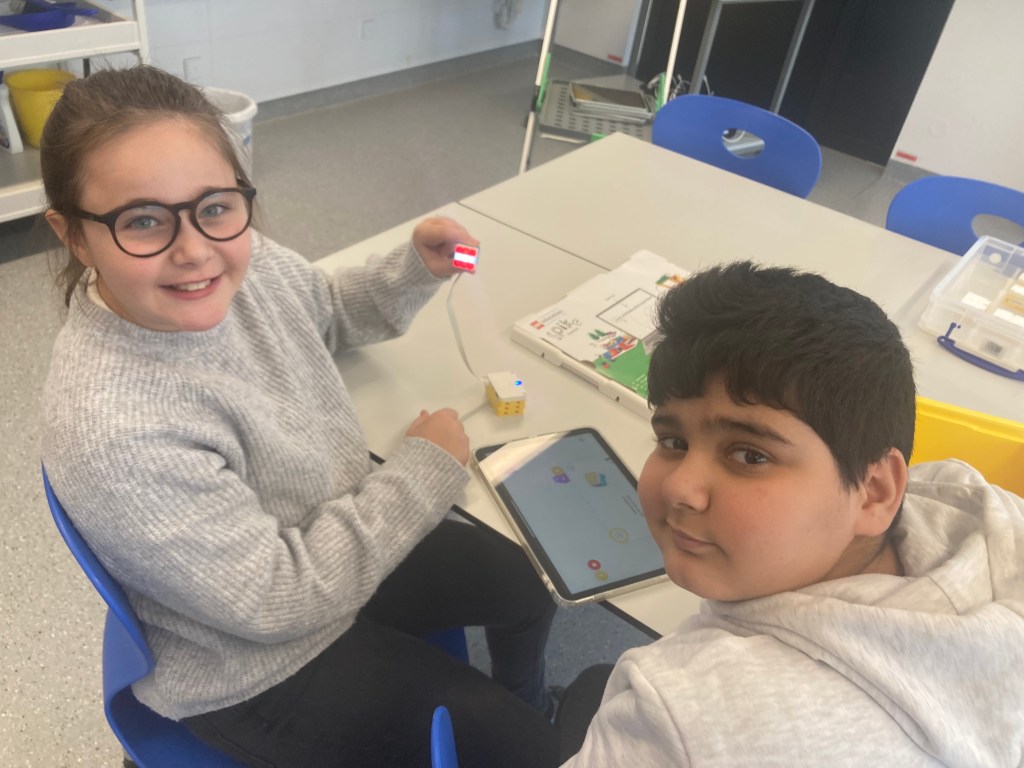 Für die 4. Klasse stand diesmal das Programmieren an der Tagesordnung. Das entsprechende Material dazu nennt sich „LEGO Spike“ und wird in Kombination mit einem Tablet bzw. einer App zum entsprechenden Programmieren verwendet.