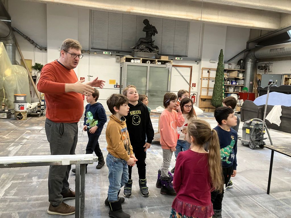 Auf der Bühne – hinter der Bühne – und sogar unter der Bühne – die Kinder der 2a durften bei der Führung durchs Stadttheater Klagenfurt wirklich in jede Ecke schauen. Auch die Maskenbilder:innen, die Schneiderei, die Requisiten – alles wurde erkundet und mit begeisterten Augen begutachtet.