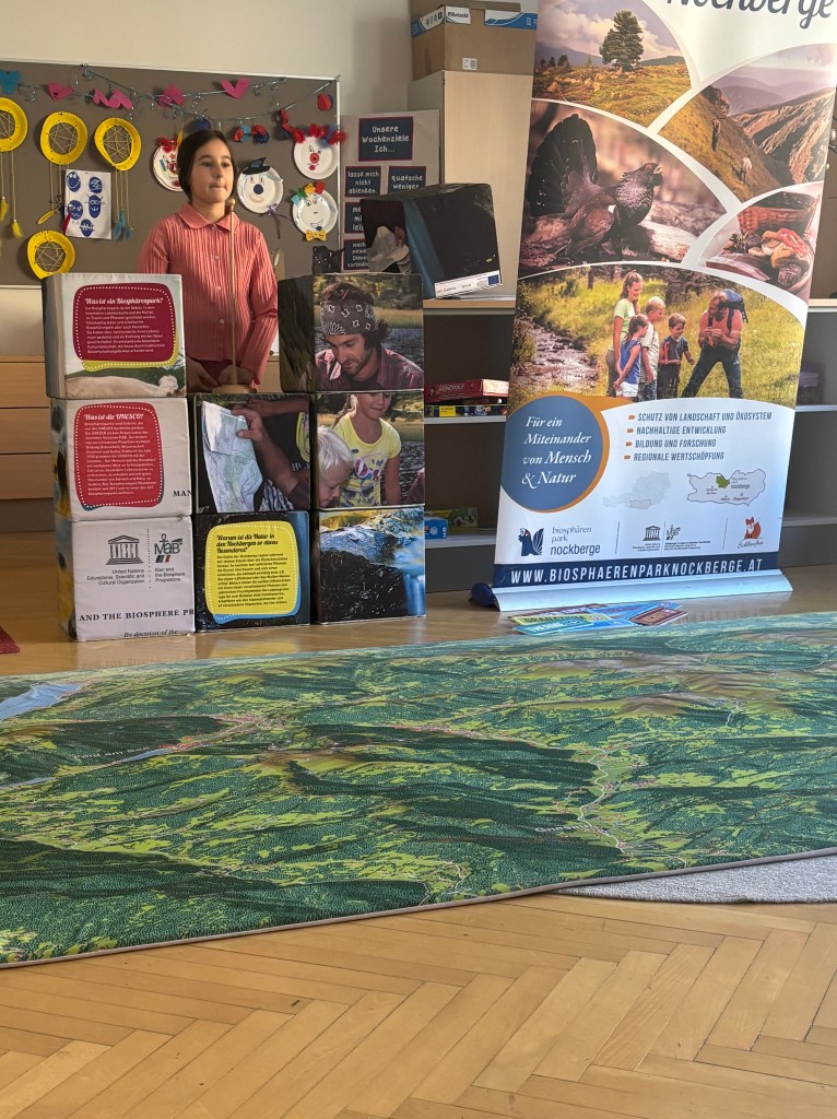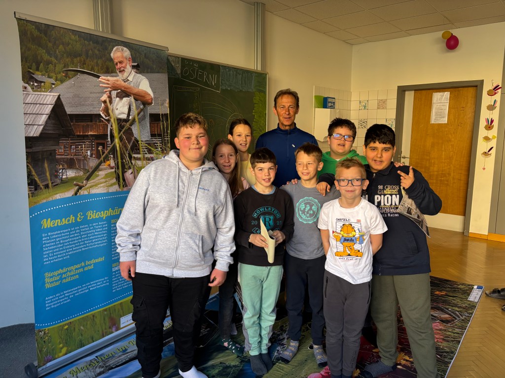 Die ausgebildeten Biosphärenpark Ranger:innen kamen von 7.4. – 11.4. mit der mobilen Ausstellung direkt in unsere Schule, um die Kinder für den Biosphärenpark Nockberge zu begeistern. Bei dieser spannenden und interaktiven Ausstellung wurden die Schüler:innen zu Entdeckern und erkundeten die Tier- und Pflanzenwelt genauso wie die geologischen Besonderheiten der Nockberge.