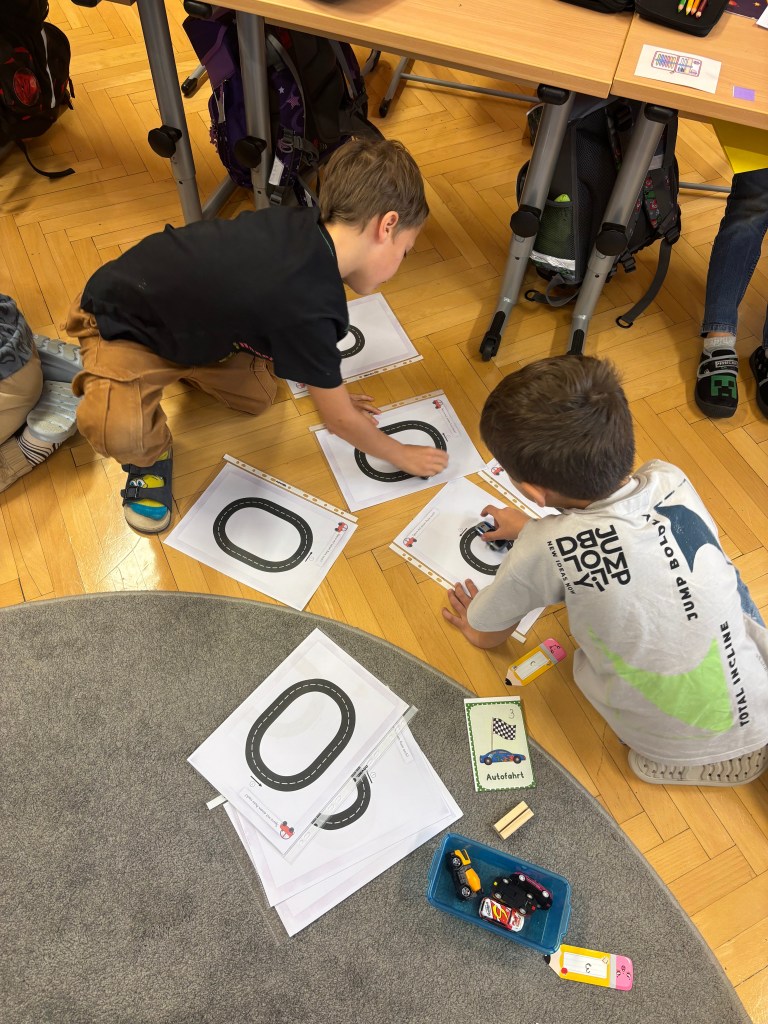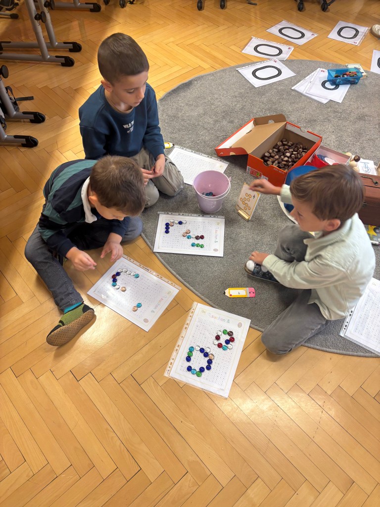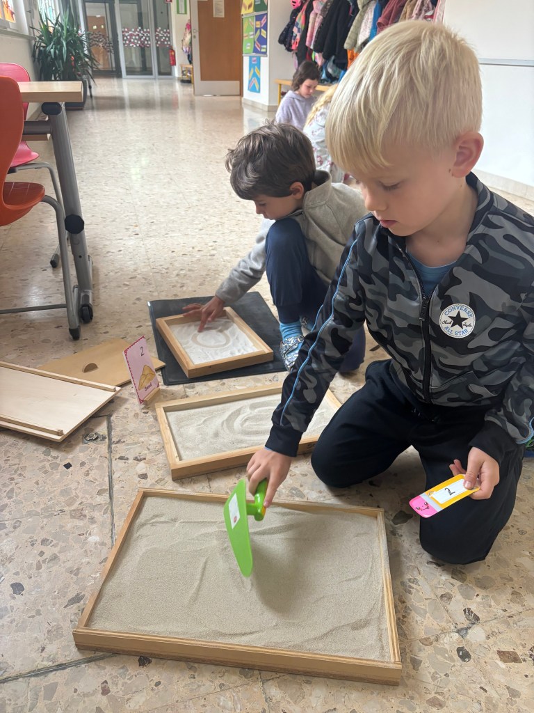 In der ersten Klasse wird beim Erlernen der Buchstaben auf alle Sinne gesetzt. Der Buchstabe wird dabei auf vielfältigste Art und Weise gelegt, geklebt, nachgespurt, gezeichnet und vieles mehr.