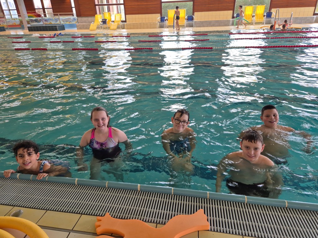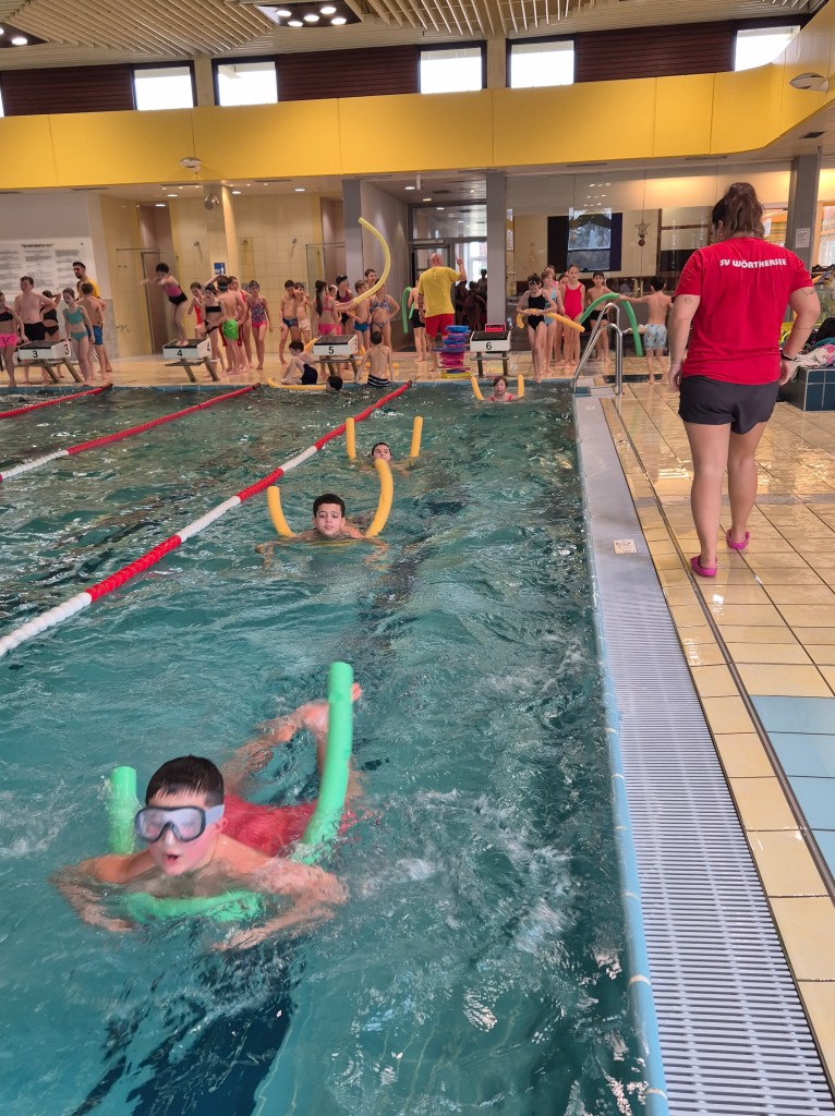 Als Schule legen wir auch einen großen Wert auf außerschulische Aktivitäten. Deshalb findet jedes Jahr von der ersten bis zur 4. Klasse ein Schwimmkurs statt. Schwimmen ist bei unserem Seenreichen Land eine wichtige Kompetenz und wir als Schule möchten einen Beitrag dazu leisten. Mit großer Freude und viel Engagement üben und erweitern die Kindern ihre Schwimmfertigkeiten.