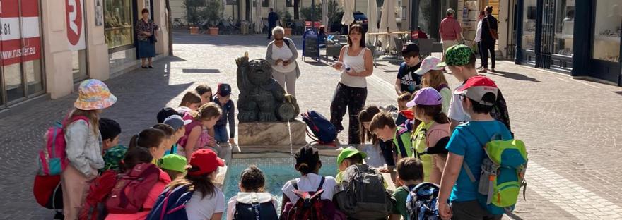 Die zweite und dritte Klasse begab sich auf Entdeckungsreise rund um die Denkmäler Klagenfurts. Dabei wurde auch der neu renovierte Stadtpfarrturm erklommen.