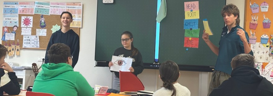 Die 4. Klasse kam in den Genuss einer Englischstunden mit den zwei Oberstufenschülern des Europagymnasiums. Das ausgewählte Thema war "body parts" und unsere SchülerInnen sowie die Klassenlehrerin waren begeistert, wie toll die zwei SchülerInnen durch diese Stunde geführt haben.